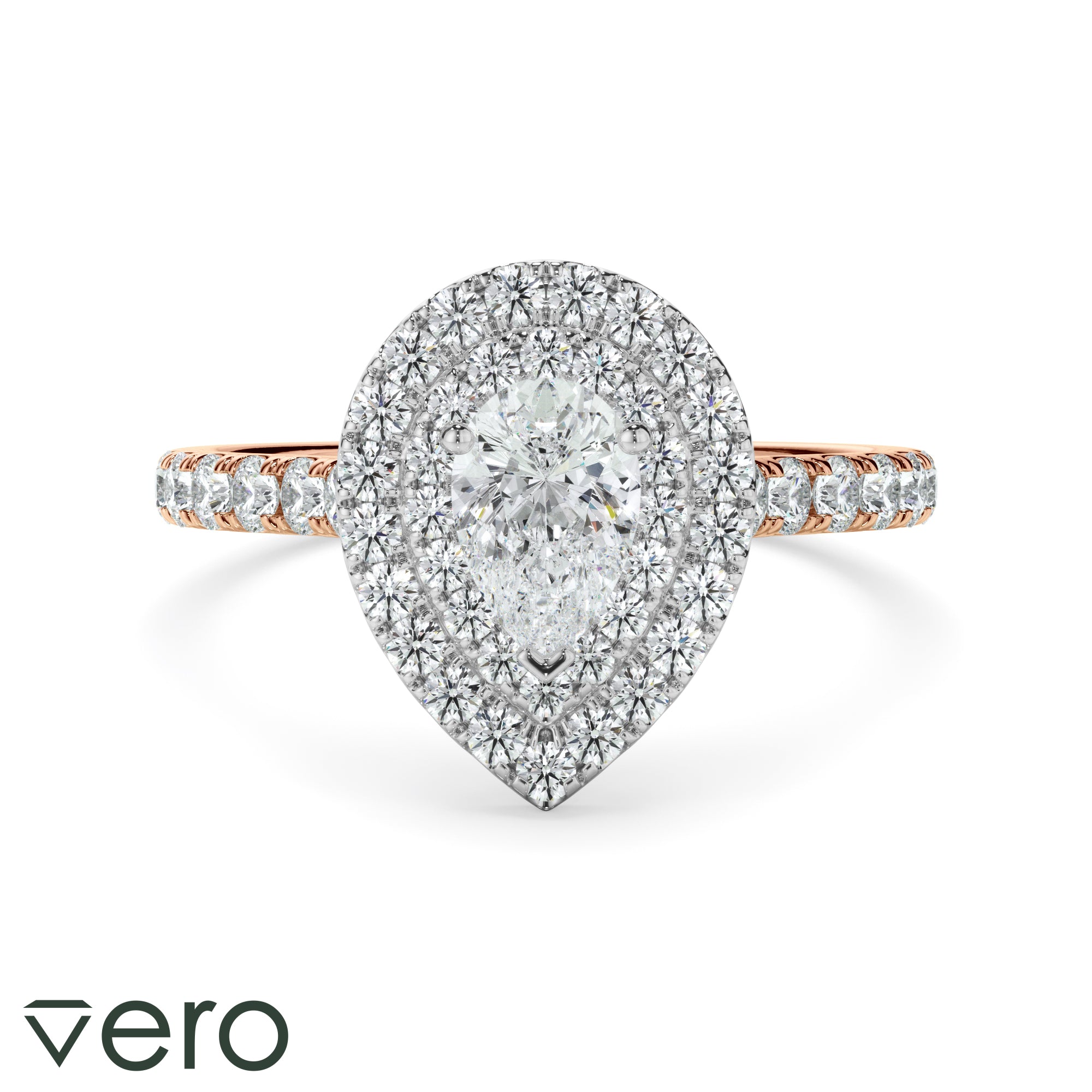 1ct Pear Cut Lab Grown Diamond Engagement Ring Set in 18ct Rose and White Gold.