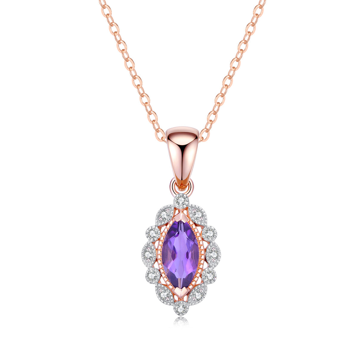 9ct Rose Gold Pink Amethyst & Diamond Pendant