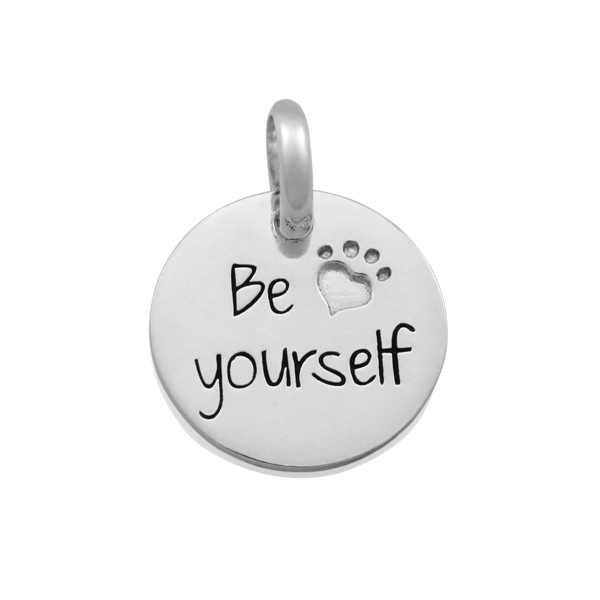 - Candid Sterling Silver 18mm round paw print Motif 'Be yourself' Pendant