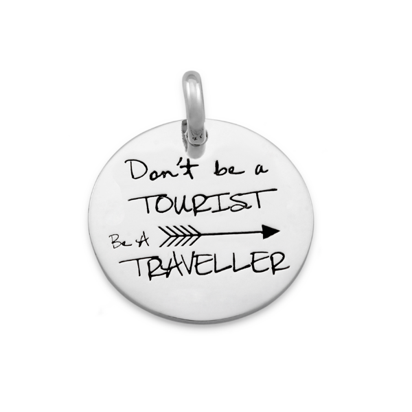 - Candid Sterling Silver 25mm round 'Dont be a tourist be a traveller' Pendant