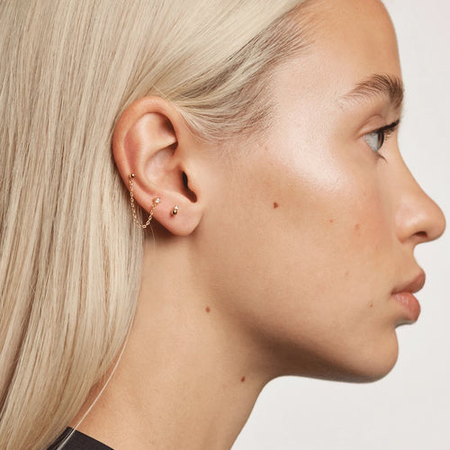 Timeless, essential and everything in between. Those are the ultimate jewelry staples: loyal and versatile designs, always glowing and ready to build up every look. Studs, hoops, necklaces, rings and bracelets infused with simplicity and grace. Crowned by colorful zirconias and diverse shapes, each piece is made of carefully polished 925 Sterling Silver plated in 18k Gold. For your day to day (and every day after).