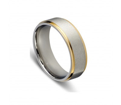 BLAZE Stainless Steel brushed ring with gold outer bands.